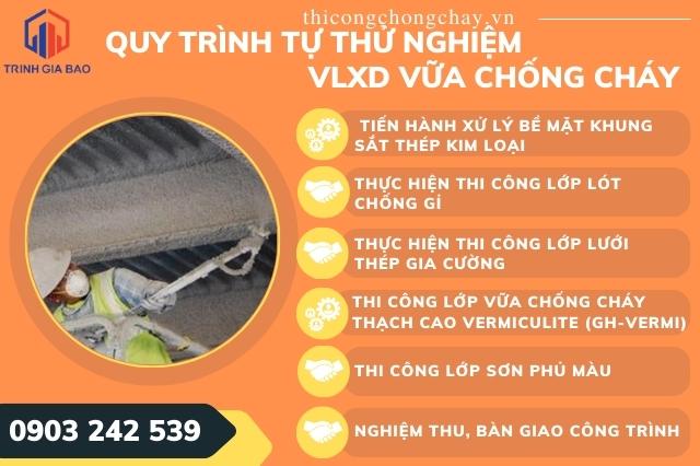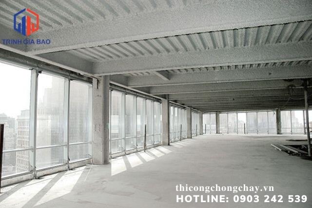 Tiến hành thực hiện phun hoặc trát trực tiếp vữa chống cháy lên kết cấu.